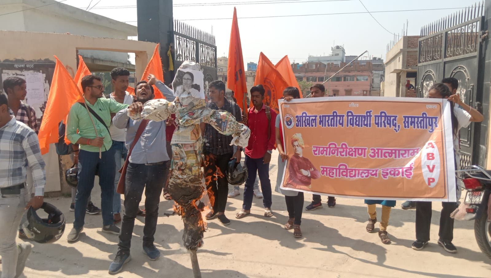 ABVP ने संदेशखाली की घटना के विरोध में ममता बनर्जी का पुतला जलाया