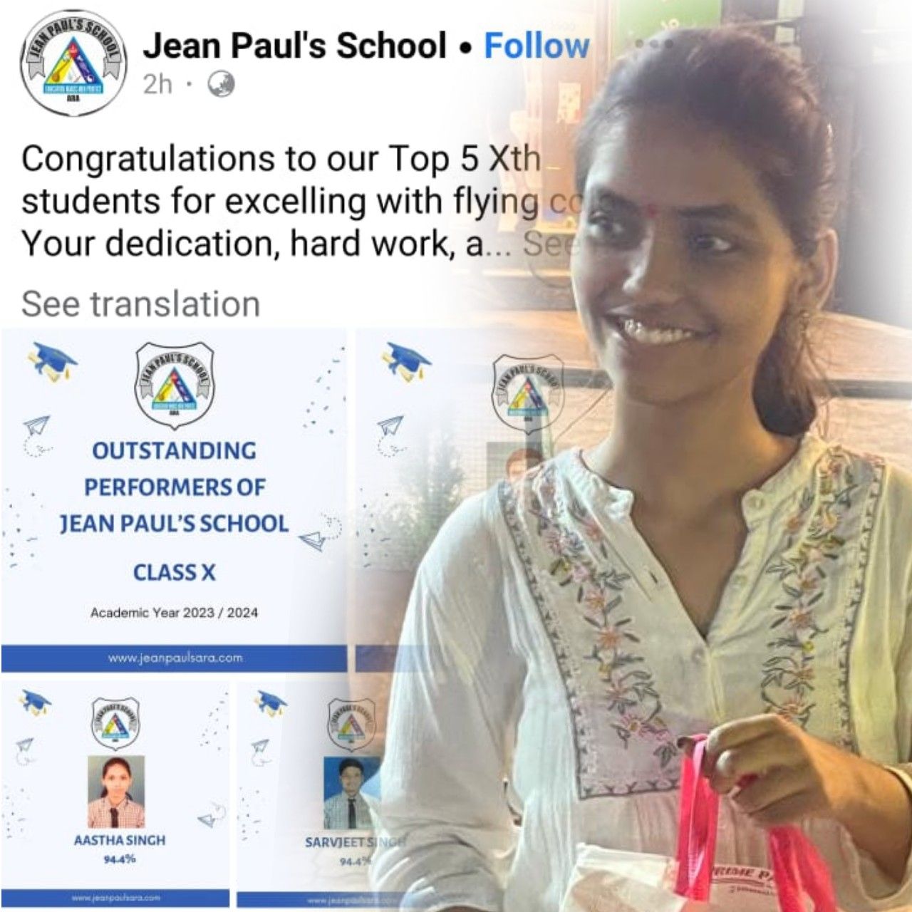 सबइंस्पेक्टर की पुत्री आस्था सिंह ने लहराया परचम, CBSE 10वीं की परीक्षा में मिले 94.4% अंक