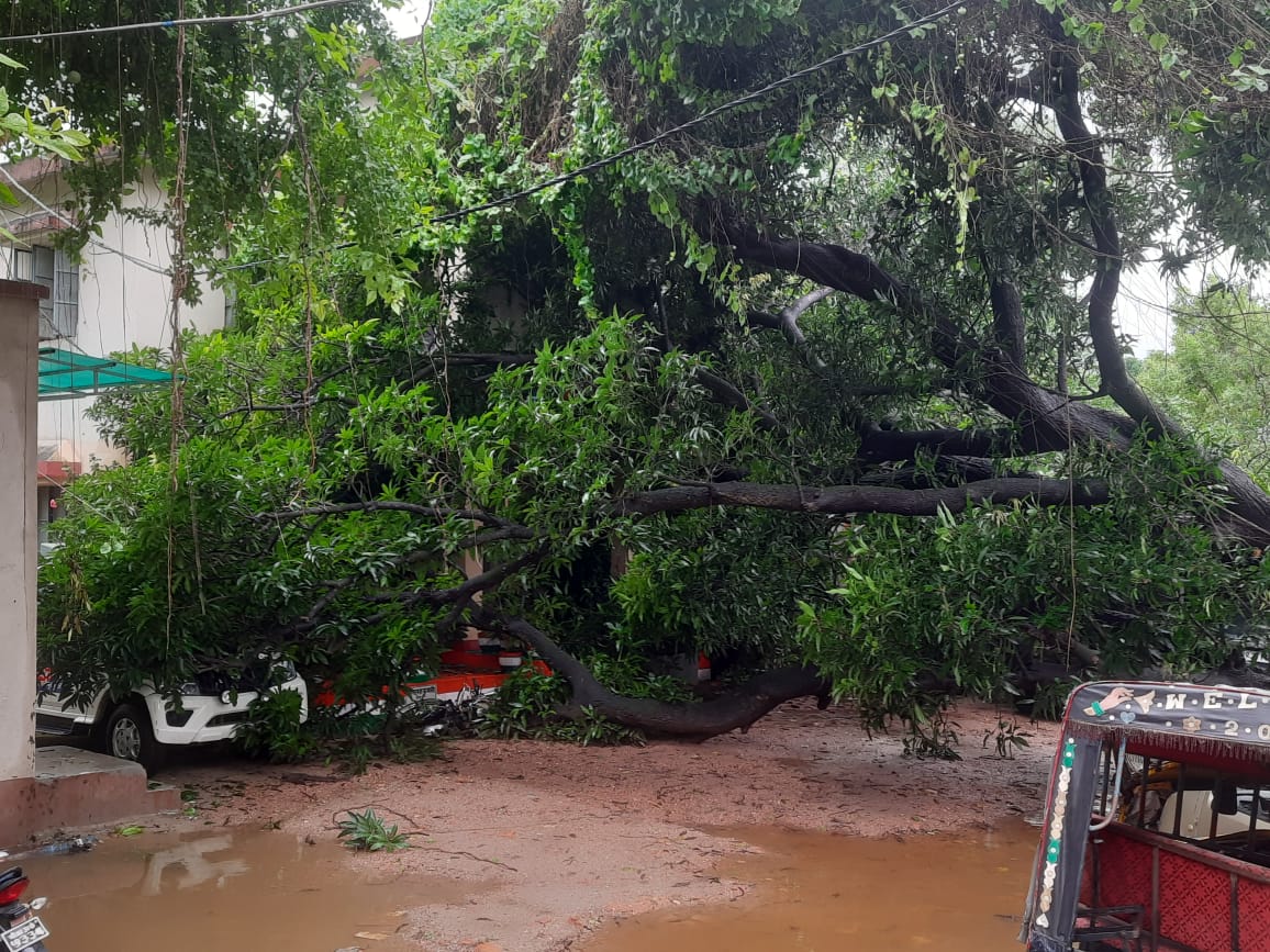 समस्तीपुर में महिला थाना के बिल्डिंग पर गिरा विशालकाय पेड़, बालबाल बचे पुलिसकर्मी, कई वाहनें क्षतिग्रस्त
