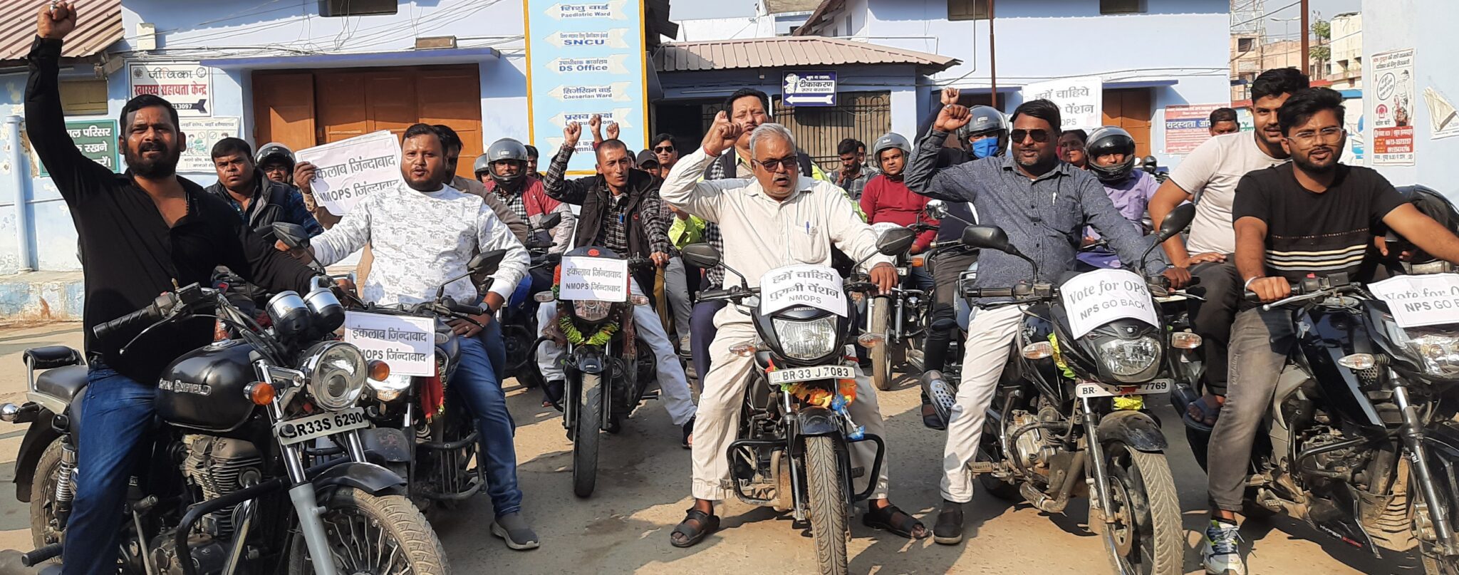 एनपीएस वापस लो के नारों से गुंजायमान हुआ शहर, निकाली बाइक रैली