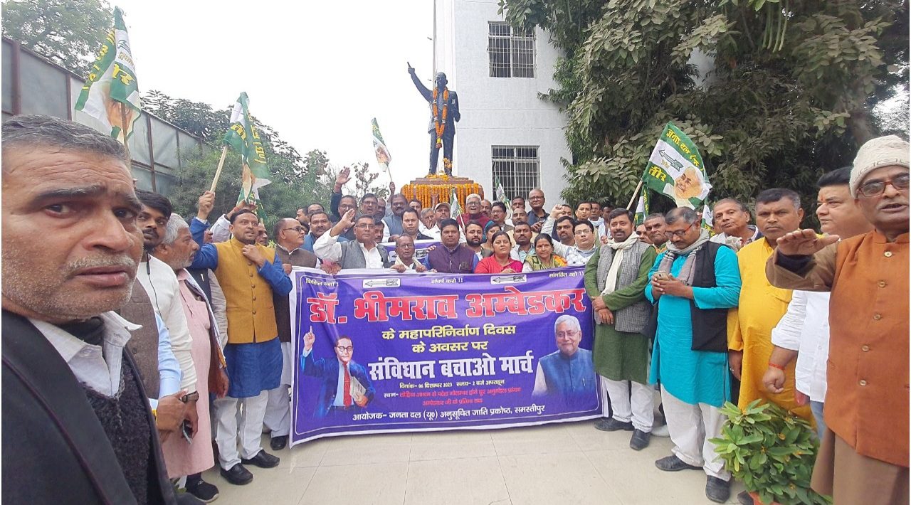 समस्तीपुर में जदयू कार्यकर्ताओं ने निकाला संविधान बचाओ मार्च