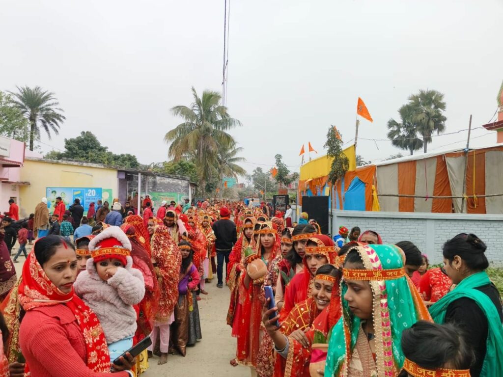 समस्तीपुर प्रखंड के विशनपुर पंचायत के दरियापुर स्थित शिव मंदिर परिसर में सोमवार को अष्टयाम महायज्ञ का आयोजन किया गया. इसको लेकर सुबह में दर्जनों श्रद्धालुओं द्वारा कलश यात्रा निकाली गई. बताया जाता है कि अयोध्या में श्री रामलला की प्राण-प्रतिष्ठा समारोह के अवसर पर ग्रामीणों के द्वारा अष्टयाम महायज्ञ का आयोजन किया गया है. इस अवसर पर गांव के सभी मंदिरों को सजाया गया है. गांव में तोरण द्वार भी बनाए गए हैं. इस आयोजन में रुपेश कुमार, अनिल कुमार, अरुण कुमार साह, तेज नारायण साह, मुकेश कुमार, लालबाबू साह, विश्वनाथ महतो, विकास महतो, बिरबल सहनी की सराहनीय भूमिका रही.