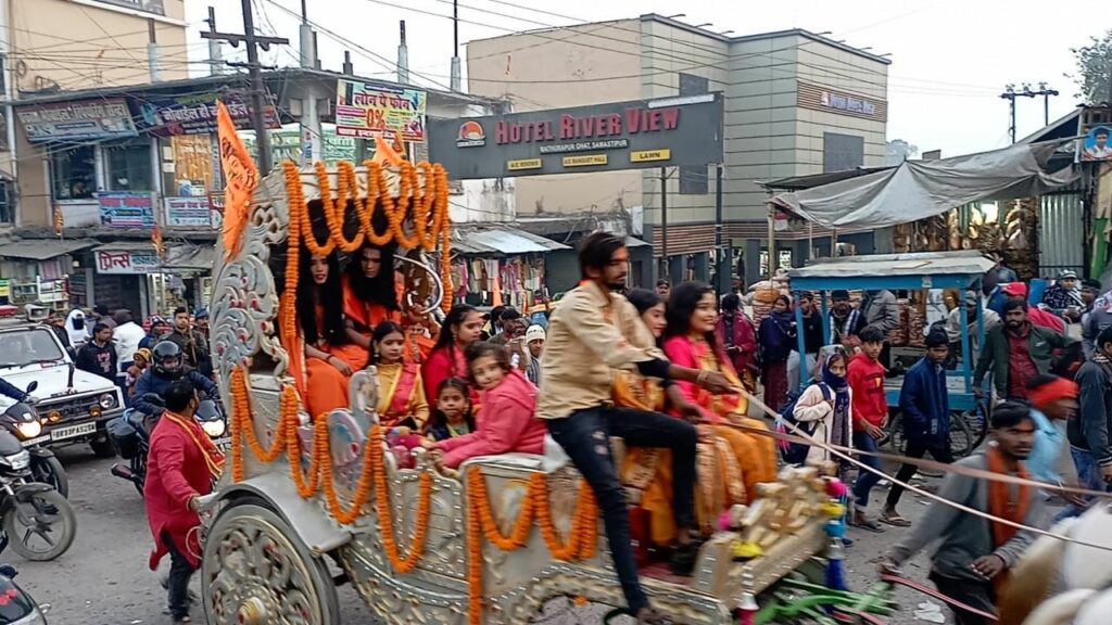 मथुरापुर घाट स्थित शिव काली दुर्गा मंदिर से सोमवार को गाजे-बाजे के साथ भव्य झांकी निकाली गई. जो मथुरापुर से बाजार समिति होते हुए रामनगर होकर मथुरापुर घाट स्थित मंदिर पर आकर समाप्त हुई. इसमें सैकड़ों की संख्या में राम भक्त शामिल हुए. पंचरुखी गांव में सुंदर काण्ड और भंडारा का आयोजन किया गया.