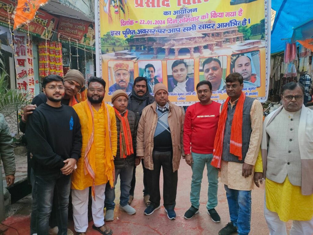 स्वर्णकार संघ के द्वारा आज श्री राम जी के प्राण प्रतिष्ठा के अवसर पर प्रसाद बांटा गया. मौके पर अध्यक्ष विजय कुमार गुप्ता, महासचिव रवि कुमार गुप्ता, सचिव विजय कुमार गोपी जी सहित फेकू जी, आनंद कुमार, अंसुल गुप्ता आदि मौजूद थे.
