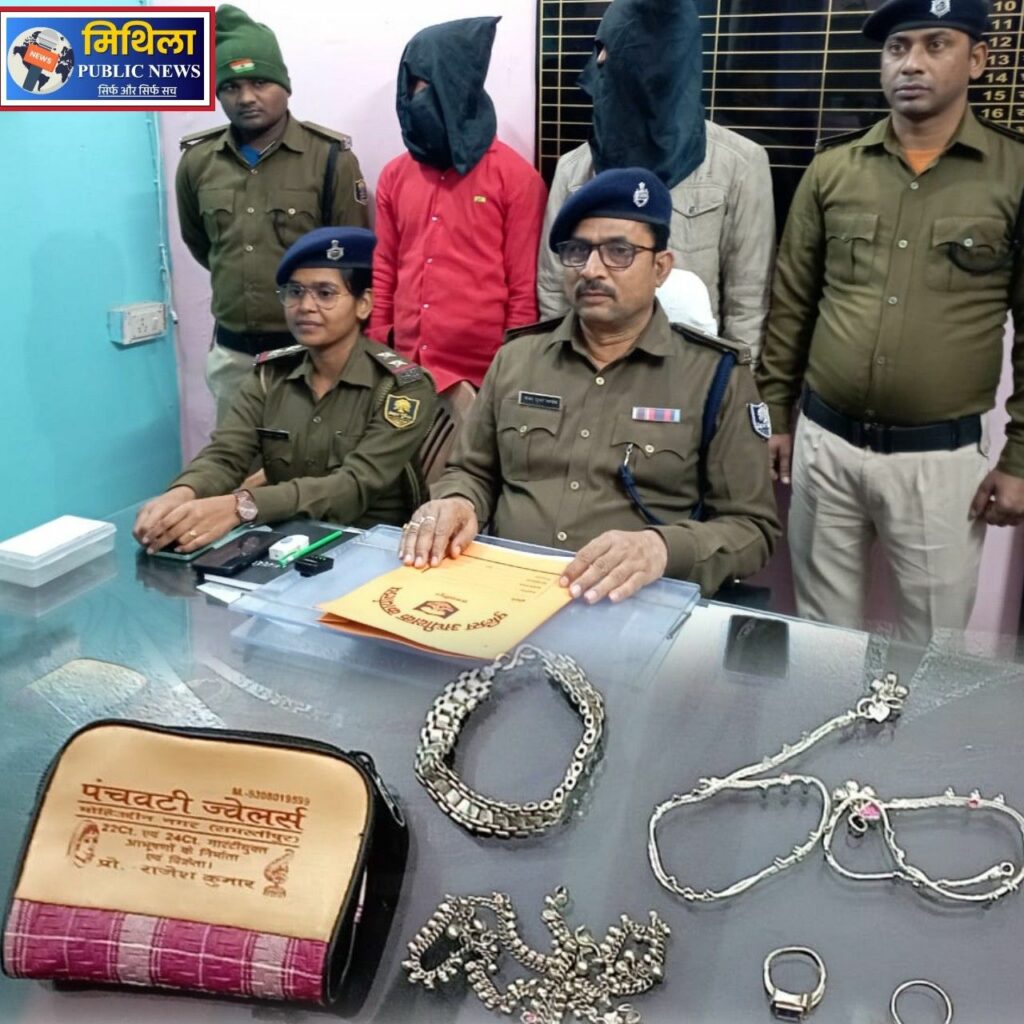 समस्तीपुर की बंगरा थाना पुलिस ने मात्र 72 घंटे के अंदर चोरी की घटना का उद्भेदन किया है. एएसपी सह सदर डीएसपी संजय कुमार पांडेय के नेतृत्व में बंगरा थानाध्यक्ष एवं उनकी टीम को यह सफलता हाथ लगी है. पुलिस टीम ने इस घटना को अंजाम देने वाले दो बदमाशों को गिरफ्तार किया है. जिनकी पहचान उजियारपुर थाना क्षेत्र के बेलारी निवासी राकेश साह के पुत्र राजा कुमार एवं अरविंद सहनी के पुत्र श्रवण सहनी के रूप में की गई है. जिनके पास से चोरी के जेवरात एवं अन्य सामान भी बरामद किये गए हैं.