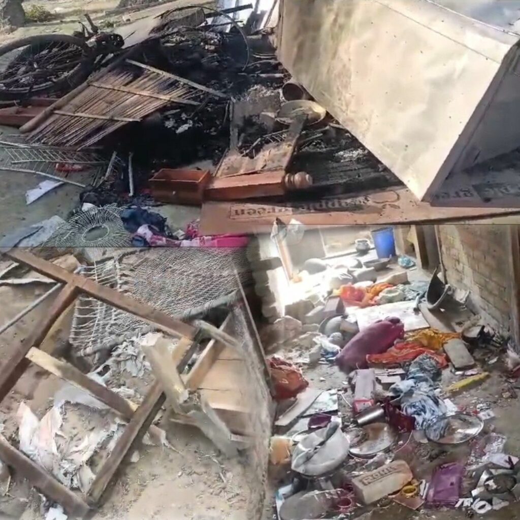 घर में रखे अनाज, किचेन के बर्तन तक निकाल कर फेंक दिए। इसके बाद भी गुस्सा शांत नहीं हुआ तो सभी सामान को घर से निकाल कर उसमें आग लगा दी। स्थानीय पुलिस घटना की जांच में जुटी है। समाचार लिखे जाने तक प्रेमीयुगल की बरामदगी नहीं हुई थी।