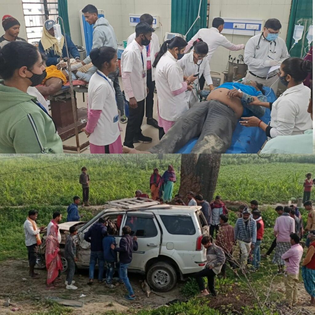 टक्कर के बाद टाटा सफारी अनियंत्रित होकर NH किनारे गड्ढे में चली गई। बताया जाता है कि टाटा सफारी में दो व्यक्ति सवार थे। जिन्हें आंशिक चोटें आयी हैं। मैजिक पर सवार सभी घायलों को ईलाज के लिए तत्काल ताजपुर रेफरल अस्पताल में भर्ती कराया गया। जहां प्राथमिक उपचार के बाद सभी का इलाज के लिए सदर अस्पताल रेफर कर दिया गया है।