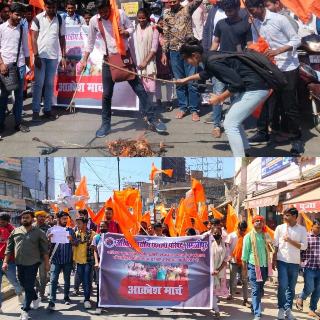 वहीं जिला संयोजक कुंदन यादव एवं सह जिला संयोजक केशव माधव ने कहा कि अखिल भारतीय विद्यार्थी परिषद राष्ट्रपति से पश्चिम बंगाल में ममता बनर्जी सरकार के नेतृत्व में चल रहे सत्ता प्रायोजित एवं सत्ता संपोषित हिंसा पर अंकुश लगाने की मांग करती है। वहीं प्रदेश कार्यकारिणी सदस्य साक्षी कुमारी एवं कॉलेज मंत्री नमिता कुमारी ने कहा कि बंगाल की महिला मुख्यमंत्री को शर्म आनी चाहिए। उनके शासन में महिला ही सुरक्षित नहीं है।