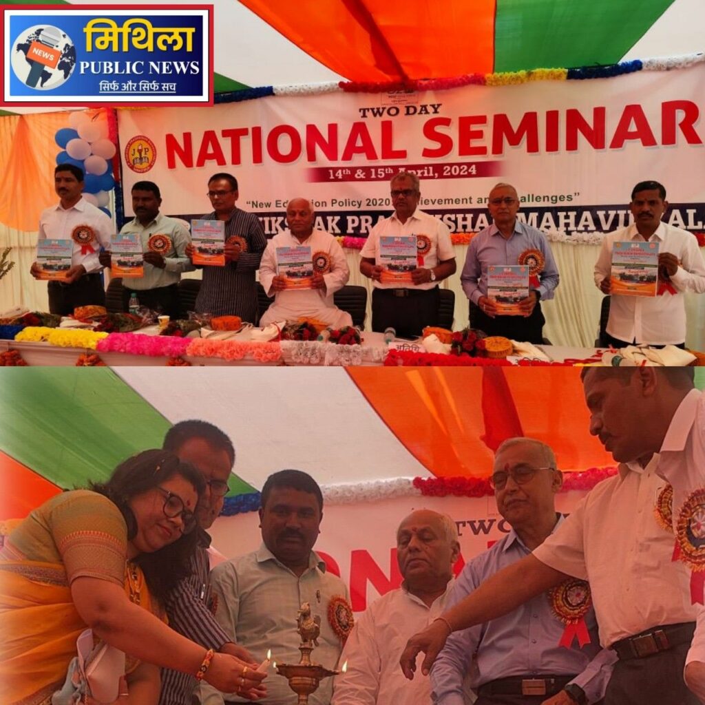 समस्तीपुर के मथुरापुरघाट स्थित जेपी शिक्षक प्रशिक्षण महाविद्यालय में “नई शिक्षा नीति 2020 की उपलब्धि और चुनौतियां” विषय पर दो दिवसीय राष्ट्रीय सेमिनार का आयोजन किया गया। रविवार को मुख्य अतिथियों ने दीप प्रज्वलित कर इस सेमिनार का उद्घाटन किया। उदघाटन सत्र में कॉलेज की प्रशिक्षणार्थियों ने सरस्वती वंदना के साथ कार्यक्रम की शुरूआत की।