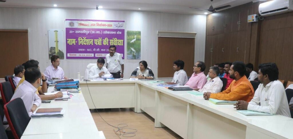 शुक्रवार को एनआईसी वीसी कक्ष में सामान्य प्रेक्षक हरीथा वी0 कुमार की उपस्थिती में जिला निर्वाचन पदाधिकारी ने 23-समस्तीपुर (अ0जा0) लोक सभा निर्वाचन क्षेत्र के नाम निर्देशन पत्रों की संवीक्षा की। संवीक्षा के दौरान राष्ट्रीय समाज पक्ष पार्टी के प्रत्याशी अजय कुमार दास की उम्र 25 वर्ष से कम होने के कारण इनके नाम निर्देशन पत्र को अस्वीकृत कर दिया गया। वहीं निर्दलीय प्रत्याशी महेन्द्र महतो के फॉर्म-26 अपूर्ण रहने के कारण इनके नाम निर्देशन पत्र को अस्वीकृत किया गया है।