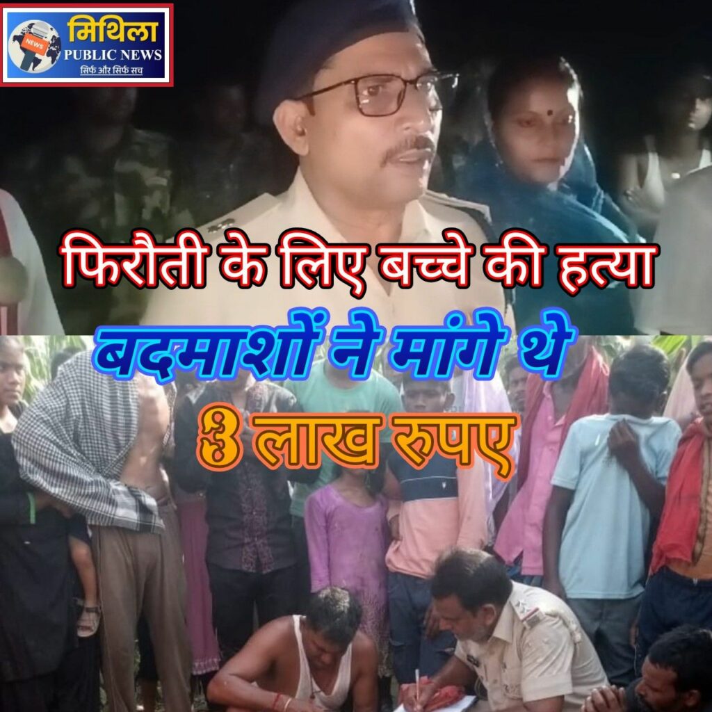 समस्तीपुर में फिरौती के लिए 6 वर्ष के एक बच्चे का अपहरण कर हत्या कर दिये जाने का सनसनीखेज मामला सामने आया है। बताया जाता है कि बदमाशों ने शनिवार की सुबह करीब दस बजे अपहृत बच्चे के पिता को फोन करके उससे तीन लाख रुपये की फिरौती मांगी थी। लेकिन पुलिसिया गतिविधि बढ़ने के बाद उस बच्चे की हत्या कर शव को गांव के ही मक्के की खेत में फेंक दिया। घटना ताजपुर थाना क्षेत्र के चंदौली गांव की है।