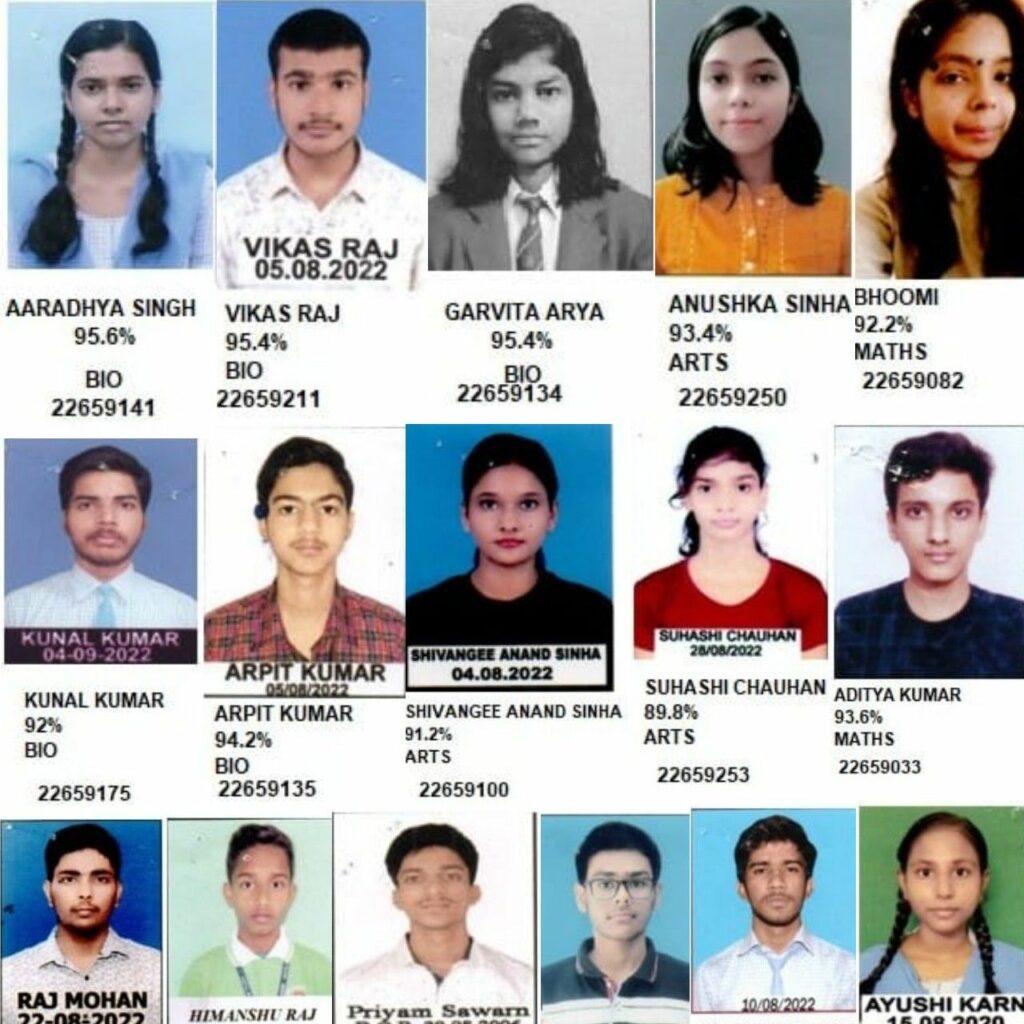 इस विद्यालय के टॉप टेन में आराध्या सिंह 96% के साथ साथ गर्विता आर्या 95.4%, विकास राज 95.4%, अर्पित कुमार 94.2%, आदित्य कुमार 93.6%, अनुष्का सिन्हा 93.4%, हिमांशु राज 93.2%, भूमि 92.2%, कुणाल कुमार 92%, सिवांगी आनंद सिन्हा 92, राज मोहन 91% टॉप टेन में अपना स्थान लाकर अपना, अपने माता-पिता, परिजन एवं विद्यालय का नाम जिला में रोशन किया है।