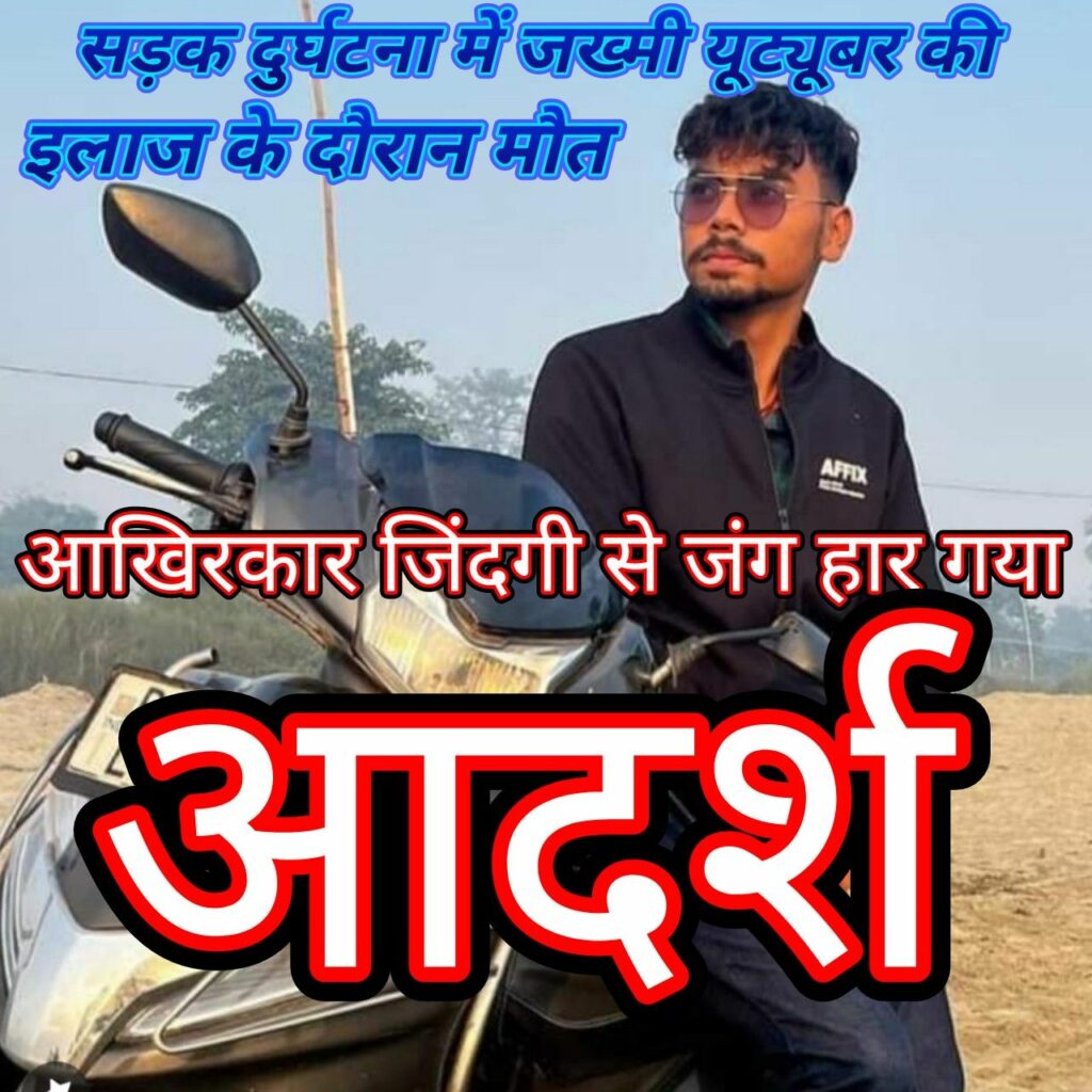 समस्तीपुर के चर्चित यूट्यूबर आदर्श आठ दिनों तक मौत से लड़ने के बाद आखिरकार जिंदगी की जंग हार गये। शुक्रवार की अहले सुबह पटना के निजी अस्पताल में यूट्यूबर आदर्श की भी इलाज के दौरान मौत हो गयी। आदर्श आठ दिन पूर्व सड़क दुर्घटना में गंभीर रूप से जख्मी हो गए थे। जिसके बाद उन्हें इलाज के लिए पटना के अस्पताल में भर्ती कराया गया था। इस दुर्घटना में समस्तीपुर के ही चर्चित यूट्यूबर प्रतीक परमार की मां की भी मौत हो गयी थी।
