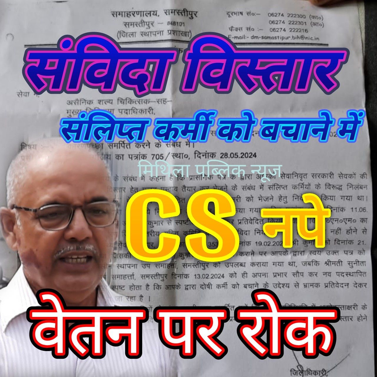बुधवार को जिलाधिकारी योगेंद्र सिंह द्वारा समस्तीपुर सिविल सर्जन डॉ एसके चौधरी को जारी किये गए कारणपृच्छा नोटिस में कहा गया है कि उनके (सीएस) द्वारा दोषी कर्मी को बचाने के उद्देश्य से भ्रामक प्रतिवेदन देकर अद्योहस्ताक्षरी (डीएम) को गुमराह किया जा रहा है। सिविल सर्जन से पत्र प्राप्ति के तीन दिनों के अंदर स्पष्टीकरण समर्पित करने को कहा गया है। जिसमें पूछा गया है कि किस परिस्थिति में अद्योहस्ताक्षरी (डीएम) के आदेश का अनुपालन नहीं कर भ्रामक प्रतिवेदिन देकर उन्हें गुमराह करने का प्रयास किया गया। डीएम ने स्पष्टीकरण के निस्तार होने तक सीएस का वेतन भुगतान स्थगित करने का आदेश दिया है।