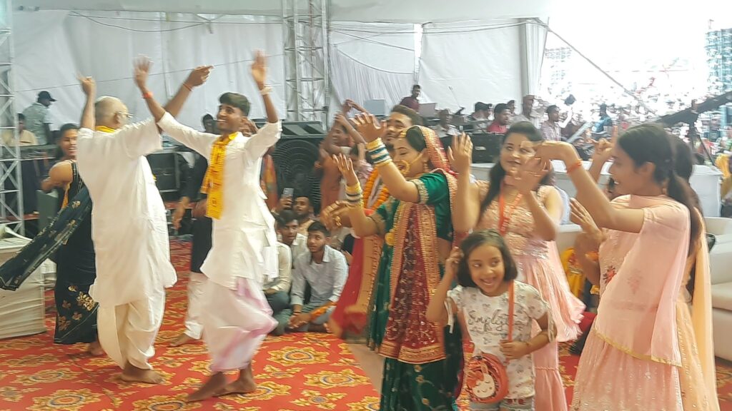 नौजवानों को सफलता का सूत्र देते हुए कहा कि कभी दूसरों में बुराई मत खोजो, बुराई देखनी है तो खुद की देखो। दूसरों में सिर्फ अच्छाई देखो। भगवान की और दूसरे की अच्छाई देखो और उनसे सिख लो। कथा के दौरान महाराज के द्वारा गाये भजन “एक डोली चली एक अर्थी चली” के बोल पर पूरा कथा पंडाल झूम उठा था।